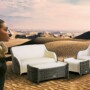 Az ülőpárnák luxus műbőr és szintetikus szövete ugyanolyan ellenálló, mint a polyrattan, sőt, a folttaszító felület akkor sem sérül, ha vörösbor, kávé vagy gyümölcslé ömlik rá. -20 és + 60 °C között semmi bajuk sem lesz.