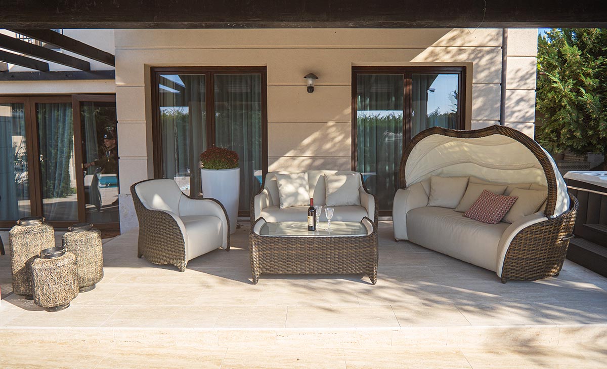 Hosszú keresés után a SpaTrend bemutatótermében kötöttem ki és pontosan azt láttam meg, ami régóta a fejemben volt: rattan kültéri bútorokat. Helyesbítek, a rattan nem volt tudatos döntés, csupán azt hajtogattam magamban, hogy valami természetes anyagú, fonott bútor legyen, klasszikus megjelenéssel. De aggódtam, hogy ezeket kint hagyhatom-e fagyban, esőben, ugyanis ahhoz kevés tárolóhelyem van, hogy mindent elpakoljak, a garázsba nem fér el minden kerti bútor. Szóval tele voltam kétségekkel a bútort illetően. És ekkor találtam rá a SpaTrend polyrattan kerti bútoraira, a Domus Ventures – Ethosra.