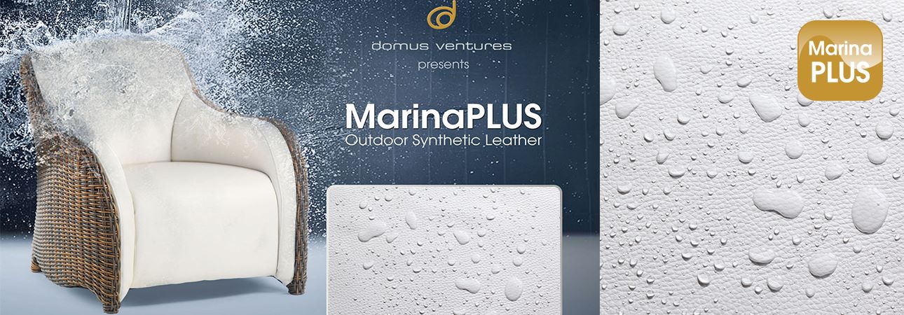 A Marina PLUS egy olyan kültéri műbőr, melyet általában a jachtokon használnak, tartóssága miatt ellenáll a különböző időjárási körülményeknek a nyílt tengeren is. Méretstabilitása és nyúlásállósága maximális kényelmet biztosít. A tapintása kellemesen puha, látványra akár a valódi bőr. A Domus Ventures bútorok ülő- és hátpárnázata is MarinaPLUS bőrből készül, melyek a varrás mentén is impregnálva vannak, ezért a víz nem tud bejutni a bútorok belsejébe, így minden időjárási körülményben kültérben hagyhatóak.