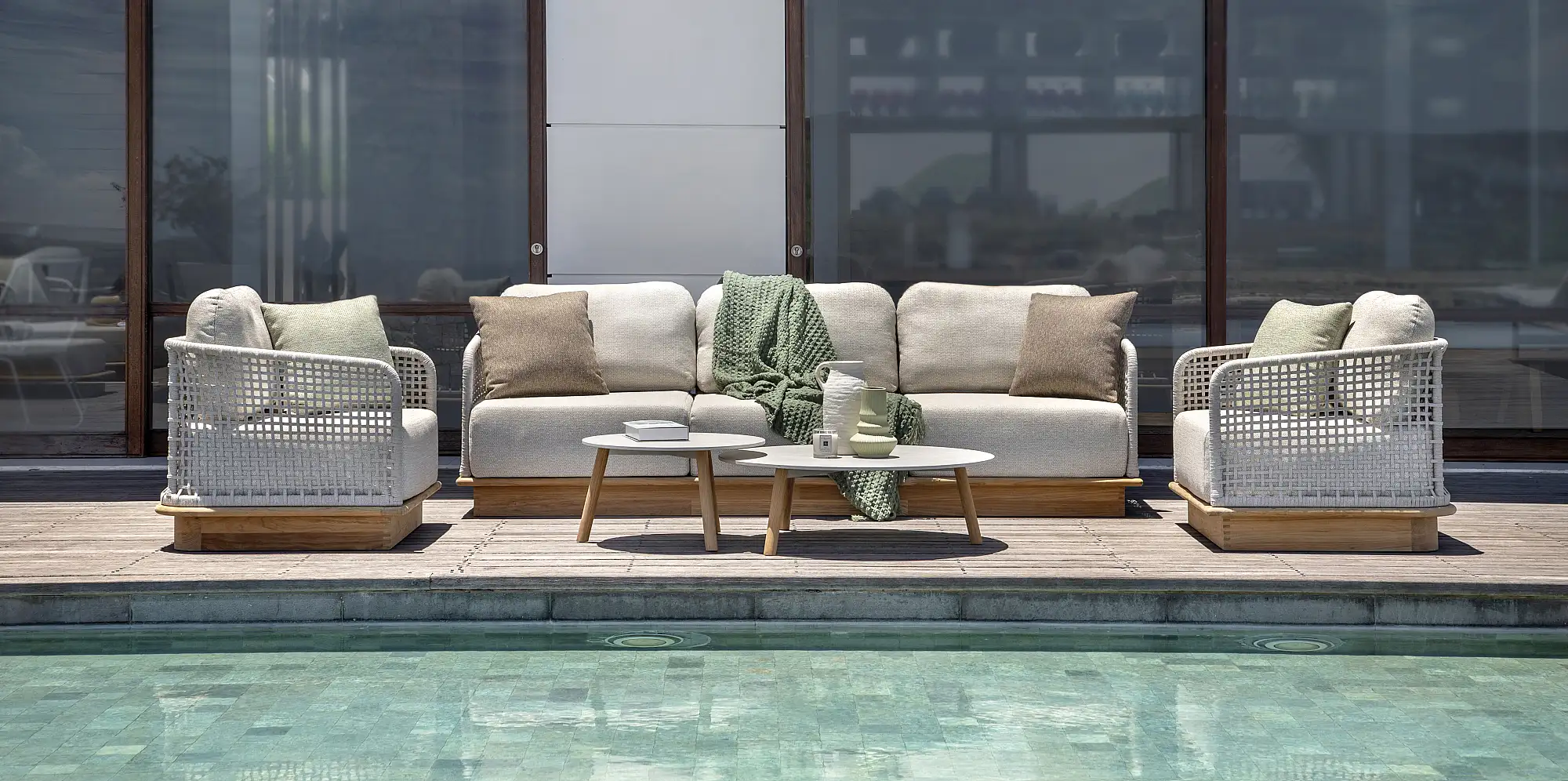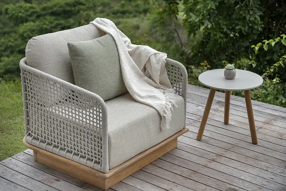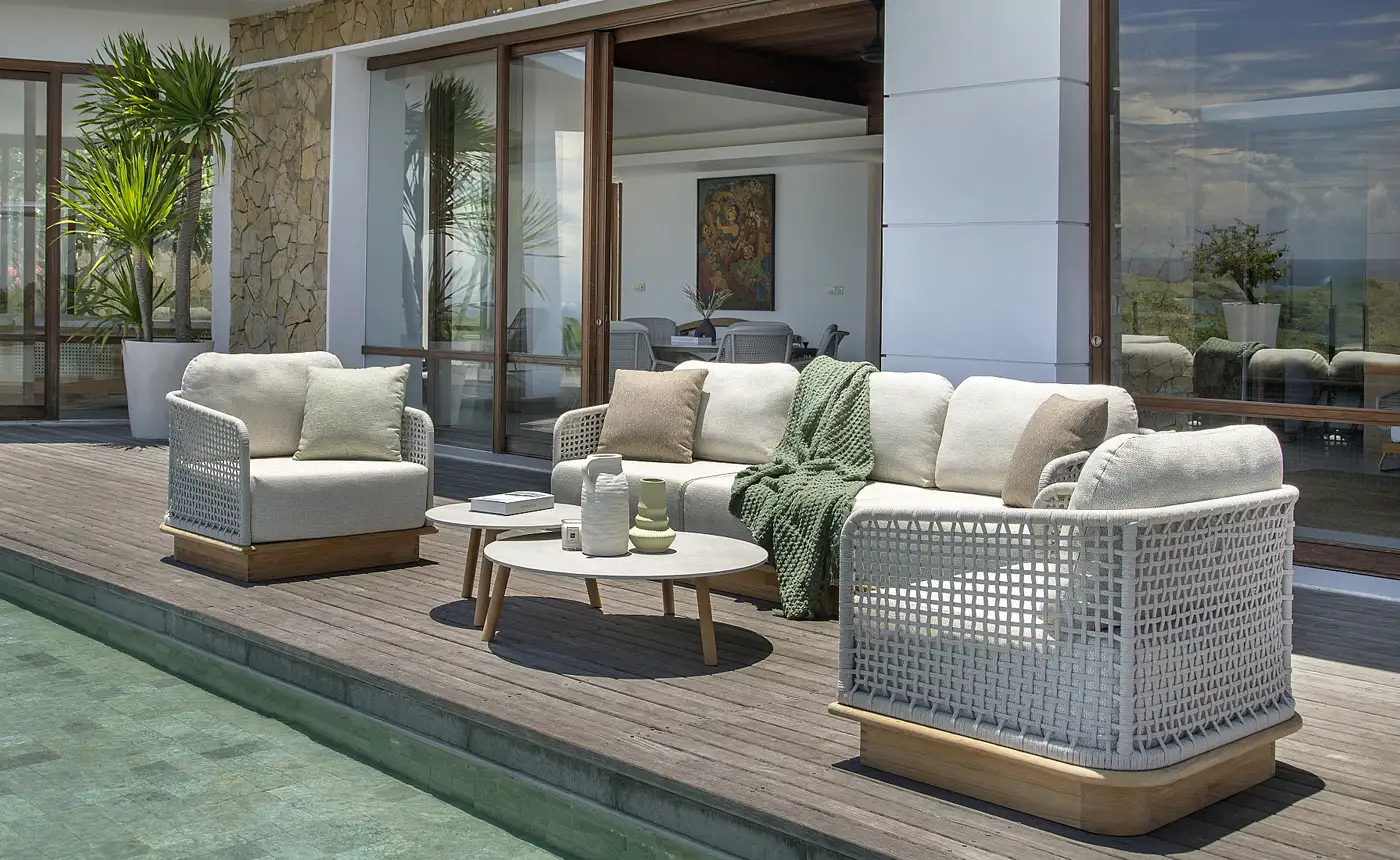 A belga Jati&Kebon a legjobb alapanyagokkal dolgozik, és kizárólag kiváló minőségű textileket használ bútoraihoz, hogy vásárlóik a lehető legnagyobb kényelemben élvezhessék a teraszuk nyújtotta lehetőségeket. Kerti bútoraik porszórással festett alumínium váza nemcsak könnyű, de a felületkezelésnek köszönhetően időjárásálló, UV álló és strapabíró is, melyek a jachtok fedélzetén is használt Sunbrella szövetanyaggal kiegészülve válnak igazán különlegessé. A gyönyörű és kiemelkedő minőségű kültéri kárpitok vízlepergetőek és tökéletesen UV állóak, a speciális Quick Dry Foam belsőnek köszönhetően rendkívül kényelmesek és pillanatok alatt megszáradnak a szabad levegőn.