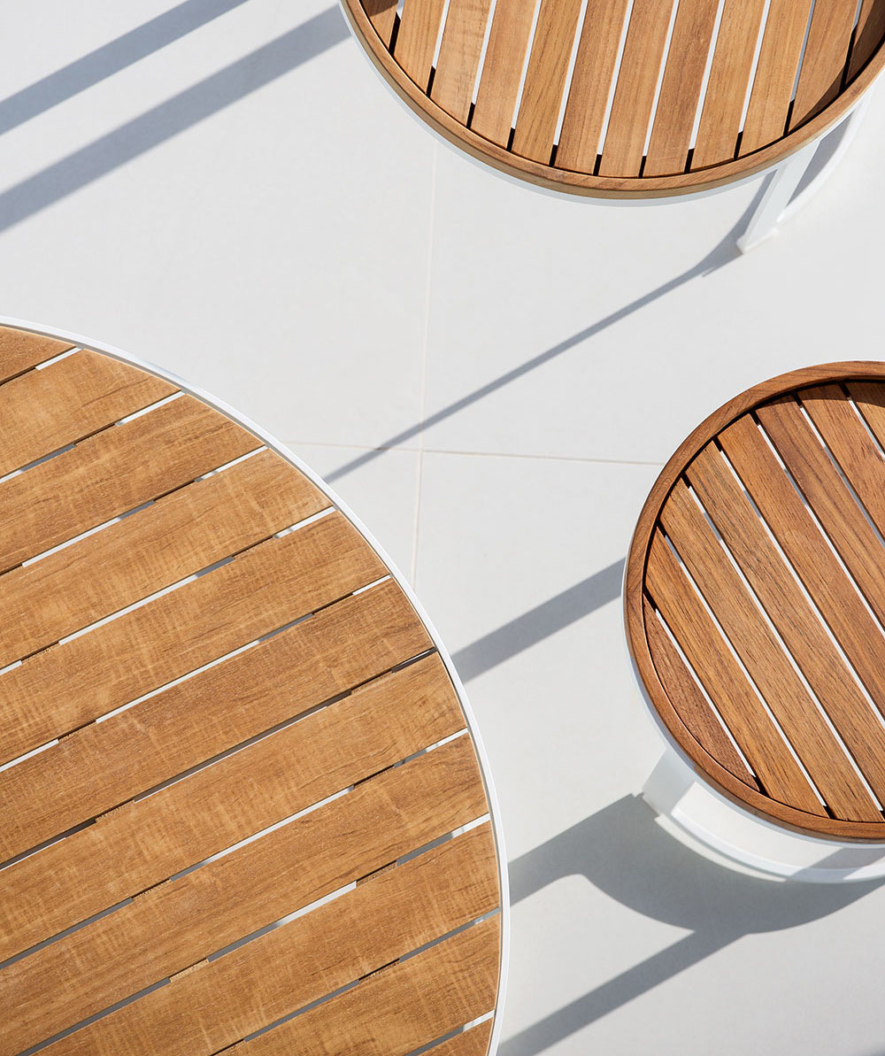 Kicsi, de nélkülözhetetlen bútor bármelyik teraszra – ez az Adagio kávézóasztal. Könnyű, így oda tesszük, ahol éppen szükség van rá, aztán már pakolhatjuk is a kedvenc könyvünket, magazinunkat, egy kancsó limonádét néhány pohárral, esetleg egy pár fagylaltos kelyhet. Télen-nyáron a szabadban hagyhatjuk, hiszen masszív, ellenáll az UV-sugárzásnak és a téli csapadéknak is. Természetes fa felülete a fém korpusszal modern stílusú teraszokon érvényesül igazán. Már csak azt kell eldöntenünk, hogy feketét vagy fehéret válasszunk.