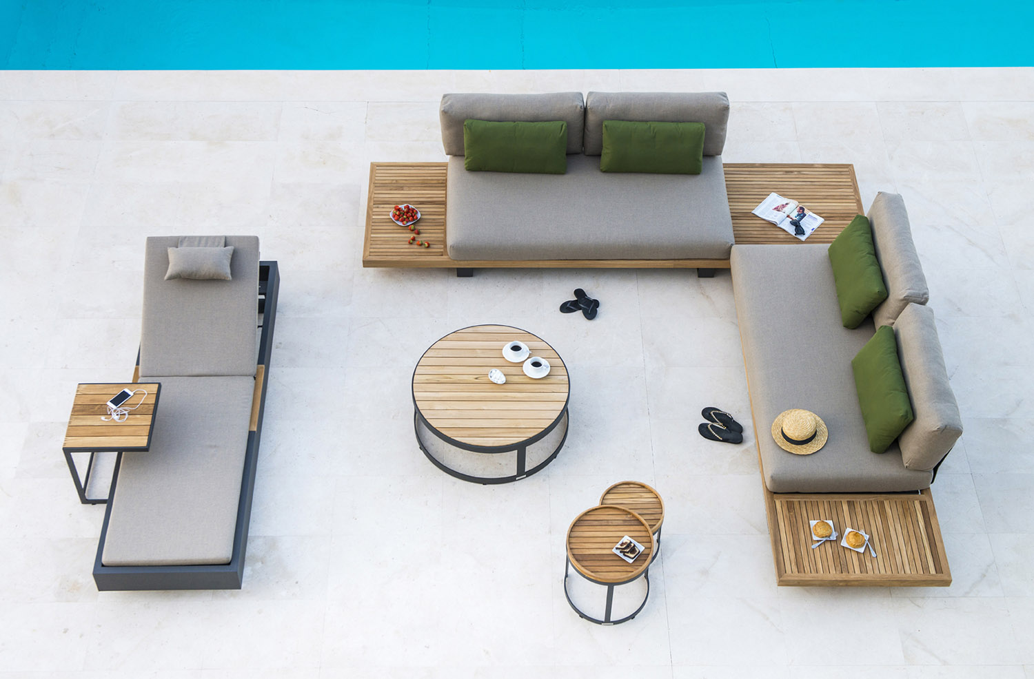 A belga Jati&Kebon a legjobb alapanyagokkal dolgozik, és kizárólag kiváló minőségű textileket használ bútoraihoz, hogy vásárlóik a lehető legnagyobb kényelemben élvezhessék a teraszuk nyújtotta lehetőségeket. Kerti bútoraik porszórással festett alumínium váza nemcsak könnyű, de a felületkezelésnek köszönhetően időjárásálló, UV álló és strapabíró is, melyek a jachtok fedélzetén is használt Sunbrella szövetanyaggal kiegészülve válnak igazán különlegessé. A gyönyörű és kiemelkedő minőségű kültéri kárpitok vízlepergetőek és tökéletesen UV állóak, a speciális Quick Dry Foam belsőnek köszönhetően rendkívül kényelmesek és pillanatok alatt megszáradnak a szabad levegőn.
