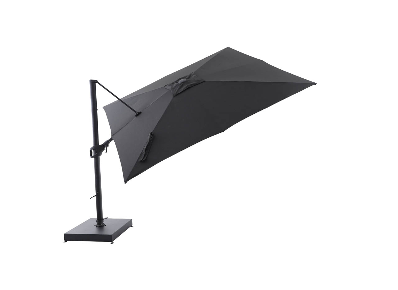 A Brezza napernyő kiváló minőségű, erős szövettel készül, amely hatékony védelmet nyújt a káros UV sugárzással szemben. Minden irányba dönthető árnyékolófeje rugalmas beállítást tesz lehetővé, így a nap állásától függetlenül optimális árnyékot biztosít. Használata egyszerű és kényelmes a mozgatókarral könnyedén állítható, ezért bármikor gyorsan a kívánt pozícióba forgatható. A strapabíró, kerekekkel ellátott gránit talp stabil tartást ad, ugyanakkor könnyen mozgatható, ha az árnyékolót másik helyre szeretné áthelyezni.