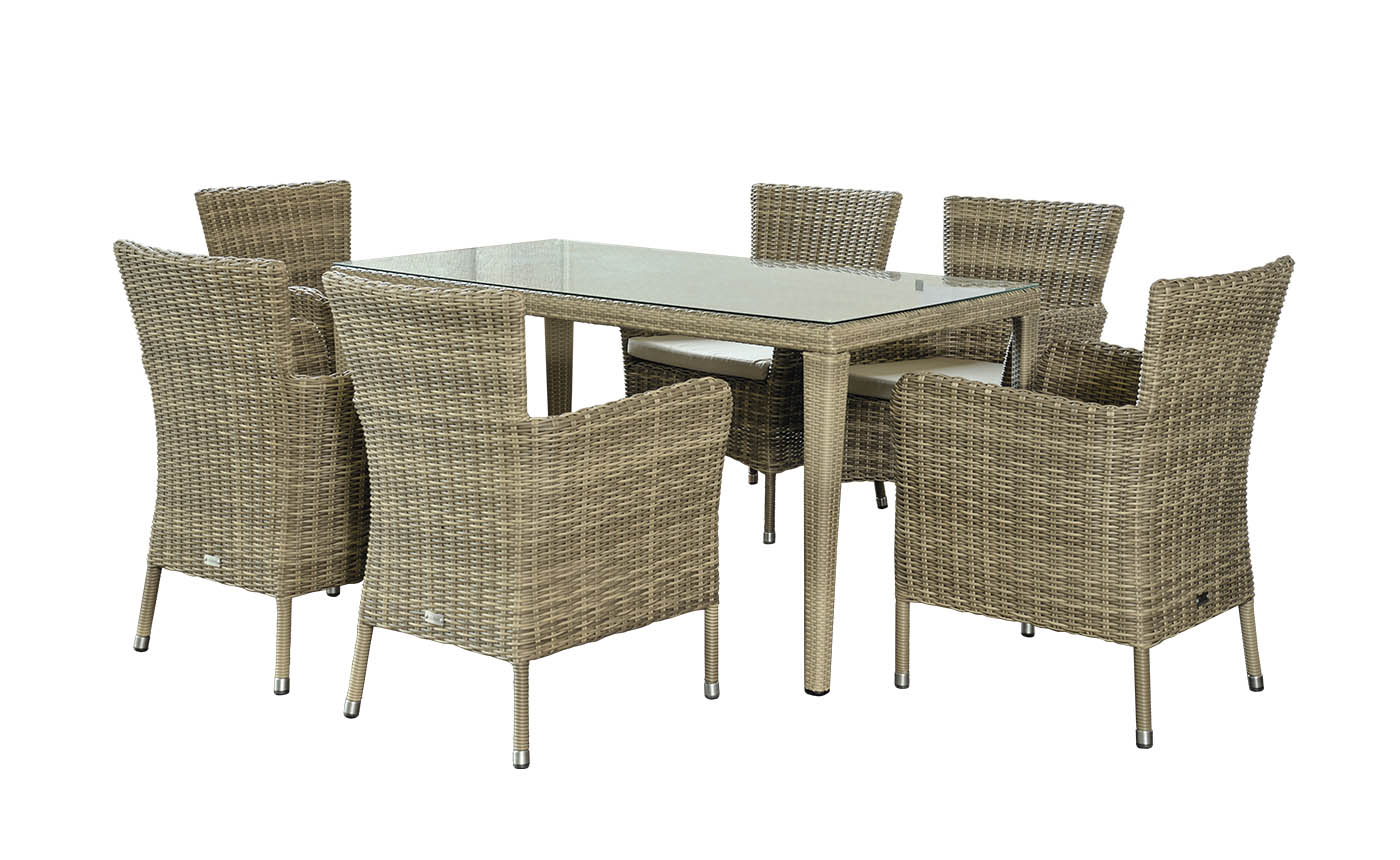 A klasszikus stílusú teraszok, kertek fókuszpontja lehet a Dallas/Aruba 6 személyes, polyrattan étkezőszett, mely egy tágas étkezőasztalból és kényelmes karosszékekből áll. Trendek jönnek, mennek de ez a stílus, az eszétikus forma és a prémium minőségű kivitel, soha nem megy ki a divatból. Az asztal könnyed és elegáns, a karosszékek igazi örökzöldek. A párnázott ülőfelület és a kényelmes, magas támla a jól ismert, megunhatatlan designnal párosul.
