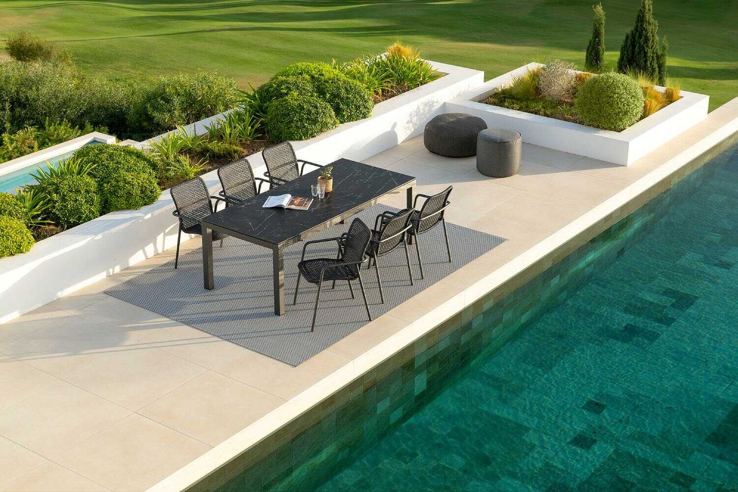 A belga Jati&Kebon a legjobb alapanyagokkal dolgozik, és kizárólag kiváló minőségű textileket használ bútoraihoz, hogy vásárlóik a lehető legnagyobb kényelemben élvezhessék a teraszuk nyújtotta lehetőségeket. Kerti bútoraik porszórással festett alumínium váza nemcsak könnyű, de a felületkezelésnek köszönhetően időjárásálló, UV álló és strapabíró is, melyek a jachtok fedélzetén is használt Sunbrella szövetanyaggal kiegészülve válnak igazán különlegessé. A gyönyörű és kiemelkedő minőségű kültéri kárpitok vízlepergetőek és tökéletesen UV állóak, a speciális Quick Dry Foam belsőnek köszönhetően rendkívül kényelmesek és pillanatok alatt megszáradnak a szabad levegőn.