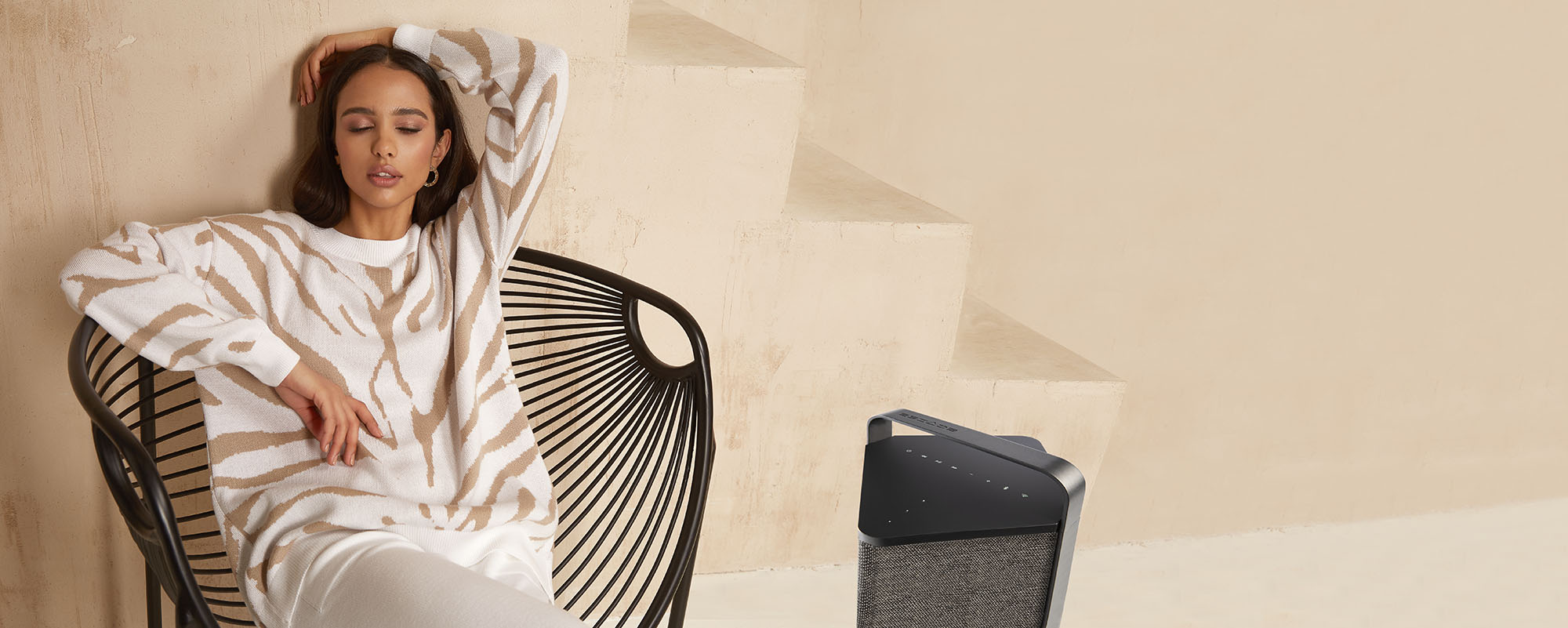 16 óra folyamatos lejátszási idő – Az új generációs, lítium-vas-foszfátból (LiFePo4) készült, nagy teljesítményű újratölthető akkumulátor 16 órányi vezeték nélküli hallgatást tesz lehetővé háttér hangerő mellett és 8 órát normál hangerő mellett. Időjárásálló kialakítás – Stílusos rács tartós multifilament poliészter fonalból, puha és természetes anyaghatású. Optimalizált szövés a kristálytiszta hangzás érdekében. Elegáns és jól kiegyensúlyozott porszórt alumínium présöntvény fogantyú és extrudált oldalszegélyek.