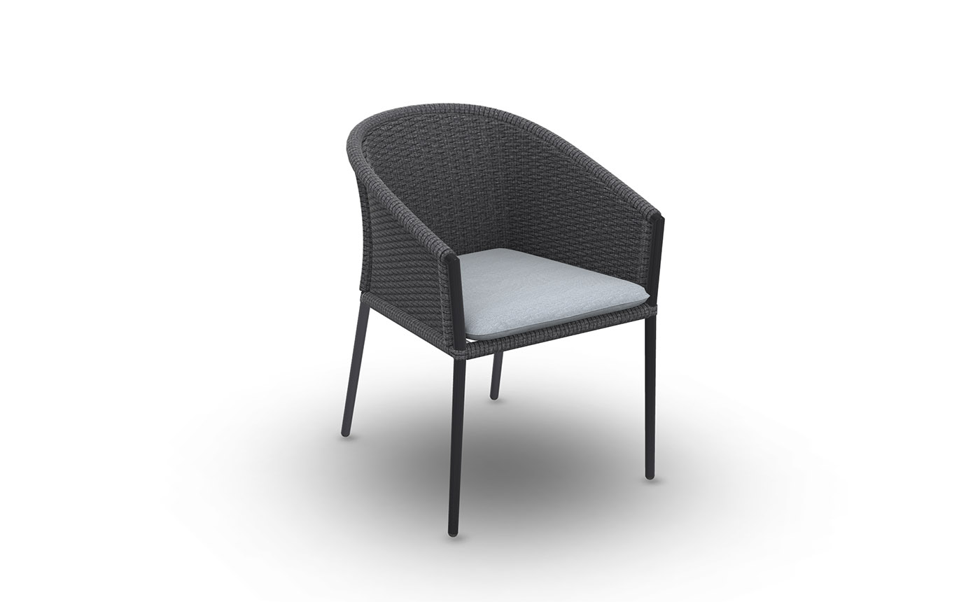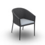 A Fortuna étkező karosszék egyik különleges példányát láthatjuk: a vízszintes irányba vezetett fonatok optikailag szélesebbnek láttatják a támlát, miközben a megszokott kényelemből ugyanúgy a maximumot nyújtja. Hasonló kivitelű bútorokkal ajánljuk variálni.