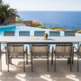 Minimalista szögletesség, kifinomult részletek. A LIVORNO étkezőasztal matt felületei az igazán stílusos eleganciát képviselik. A kerámia asztallap kihúzható, 6 személyesről 8 vagy 10 személyesre bővíthető a székek elrendezésétől függően. Remek kiegészítője a rakásolható MALAGA étkező karosszék, melynél a kényelem kiemelten fontos, a karfa jól alátámaszt, a textilén ülőfelület pedig rugalmassága által finoman átveszi az emberi test formáját, így nem nyom és puha ülésérzetet ad.