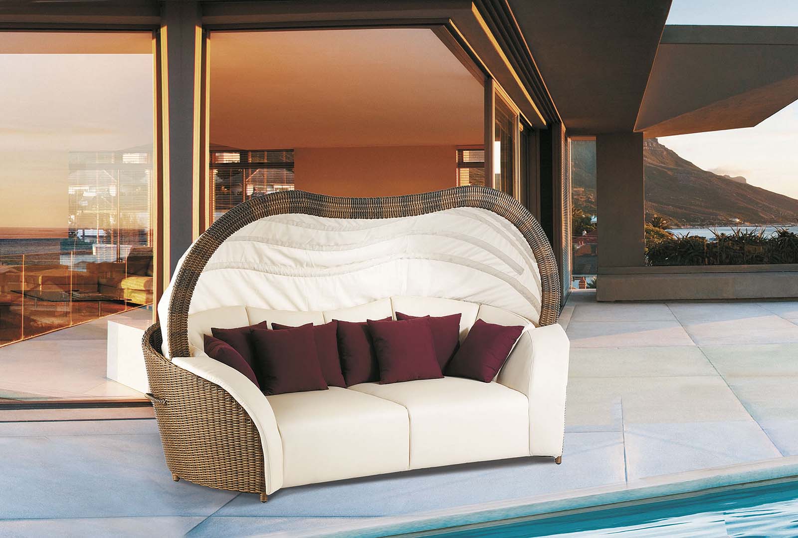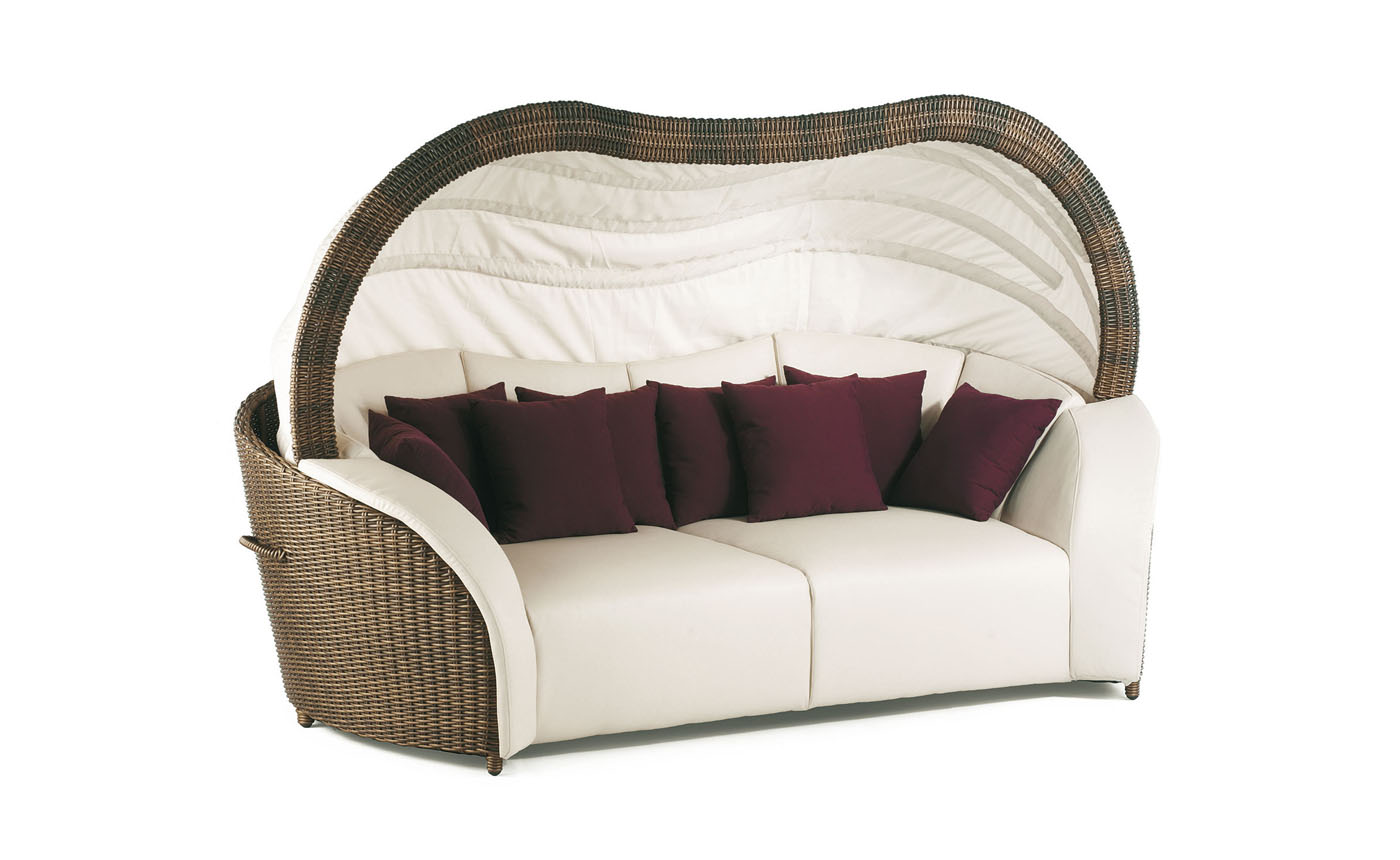 A LUXOR 3 személyes nagy kanapéjával trópusi hangulatot teremthetünk teraszunkon. A lehajtható tető a kanapén pihenőket óvja a naptól és a csepergő esőtől is. Ezen a kényelmes hatalmas kuckózós kanapén a pihenés igazán luxor érzés.