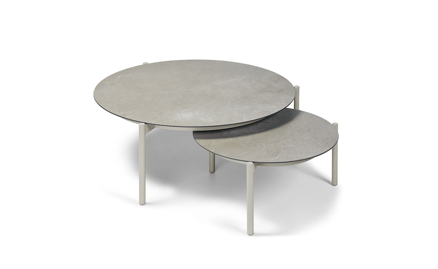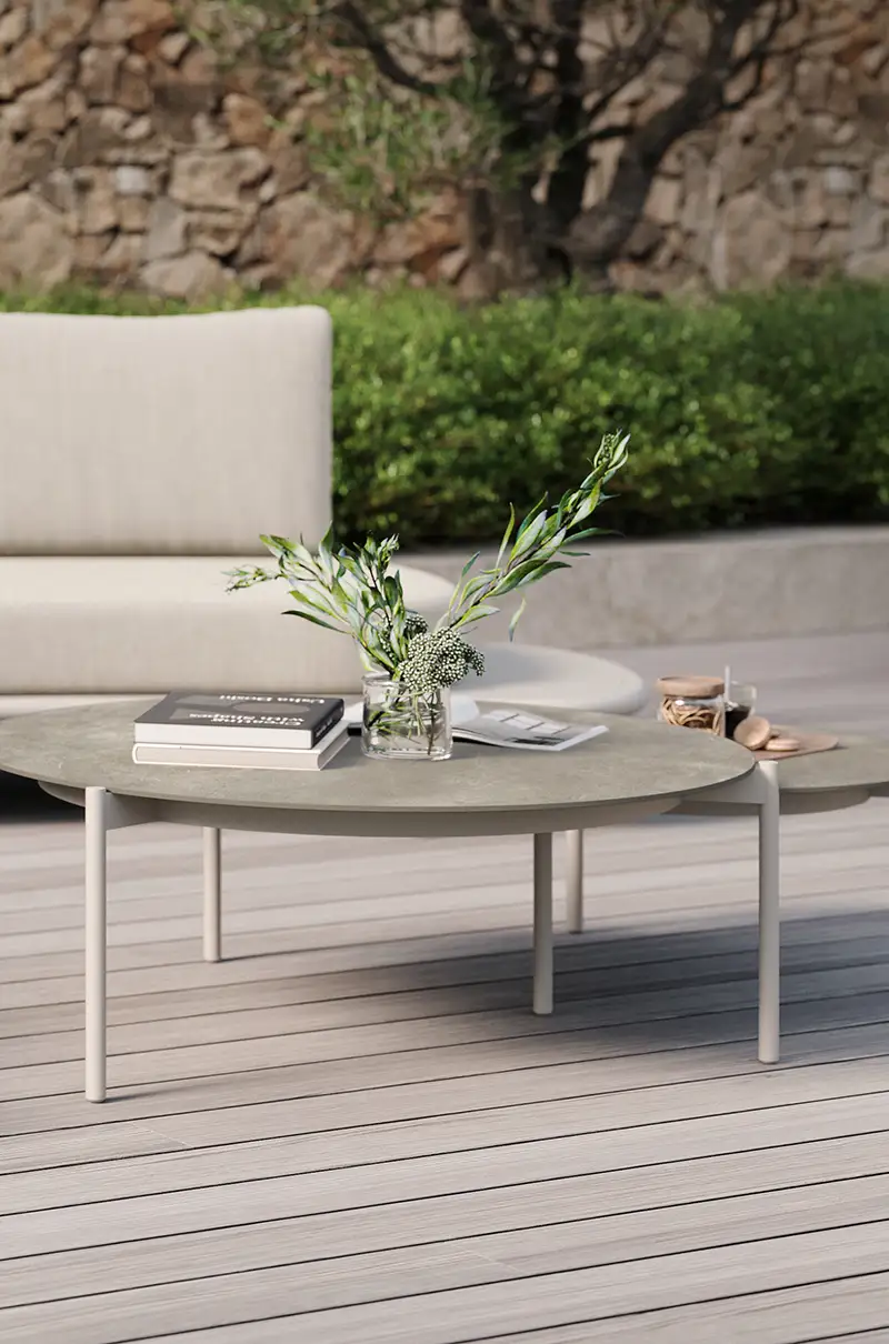 Az Organo kávézóasztal elegáns, kerek formavilágával és kifinomult anyaghasználatával tökéletes kiegészítője lehet bármely terasznak vagy kertnek. Strapabíró, mégis könnyű porszórt alumínium váza stabilitást nyújt, míg a kerámia tetőlap nemcsak esztétikus, hanem könnyen tisztítható is, így praktikus és időtálló választás.