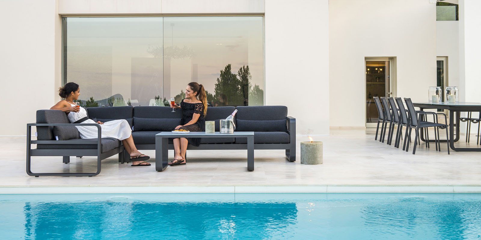 A Reno szófa légies jellege tengerparti feelinggel lengi be teraszunkat. A lágy fehér és hűvös kék árnyalatai hűsítően hatnak érzékeinkre.