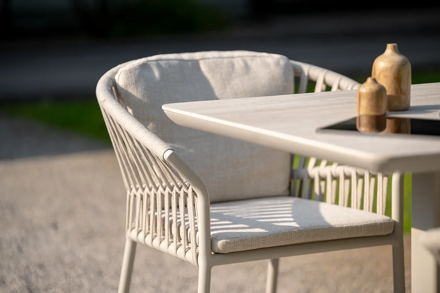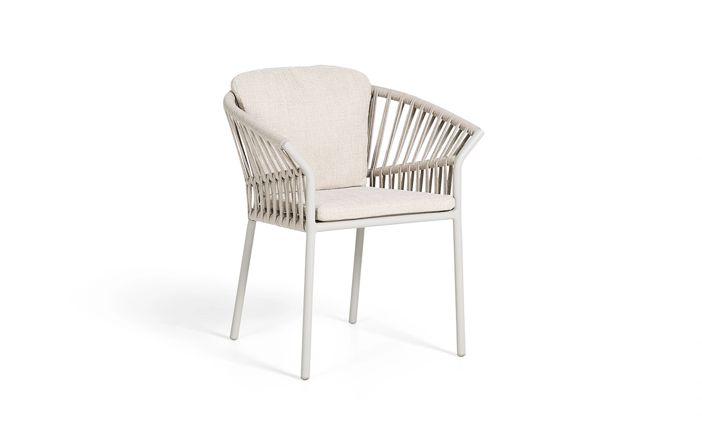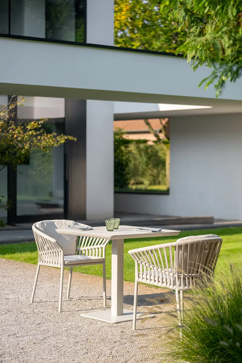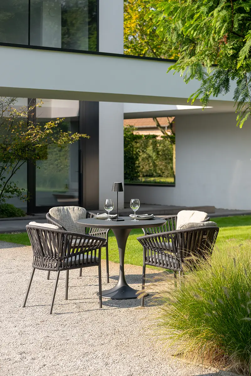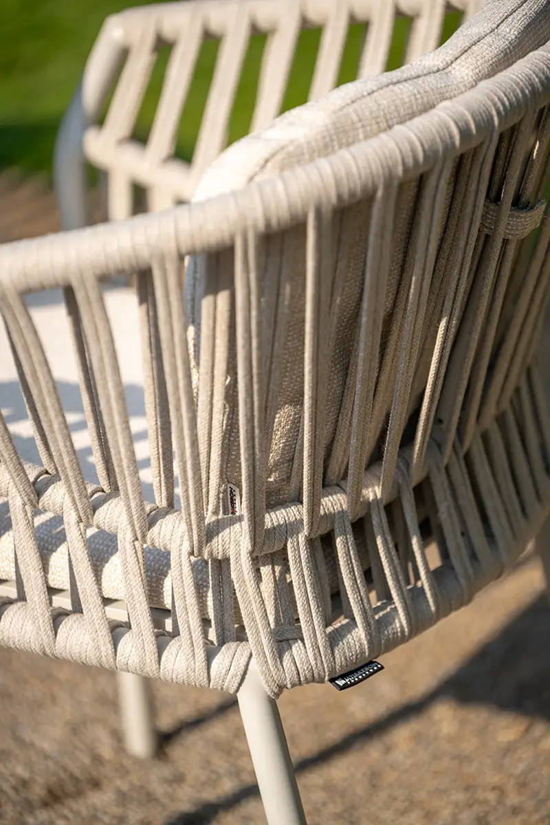 A Tofino Alu karosszék modern formavilágával és prémium anyaghasználatával tűnik ki. Könnyű, mégis erős porszórt alumínium váza rendkívül strapabíró, míg a kötélfonott ülőfelület egyedi megjelenést biztosít. A kényelmes ülő- és hátpárnák időjárásálló, UV-álló textilszövetből készültek, amelyek tartósak és ellenállnak a kültéri kihívásoknak. Stílusos és praktikus kerti bútor.