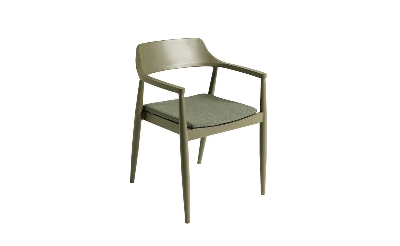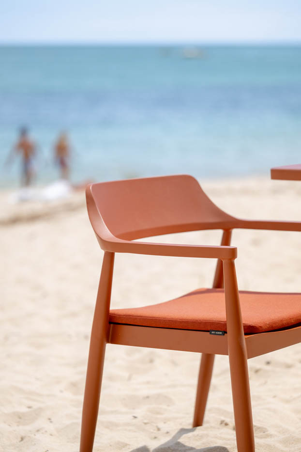 A Tofino karosszék könnyed, mégis strapabíró kialakítással emeli a kültéri étkezőterek kényelmét. Porszórt alumínium váza stabil és időjárásálló, miközben rendkívül könnyű súlyának köszönhetően egyszerűen mozgatható és jól variálható. A kényelmes, puha párnák kellemes ülésélményt biztosítanak, így hosszabb beszélgetésekhez és étkezésekhez is ideális. Letisztult, modern megjelenése jól illeszkedik bármely Tofino étkezőasztalhoz vagy más prémium kerti bútorhoz.