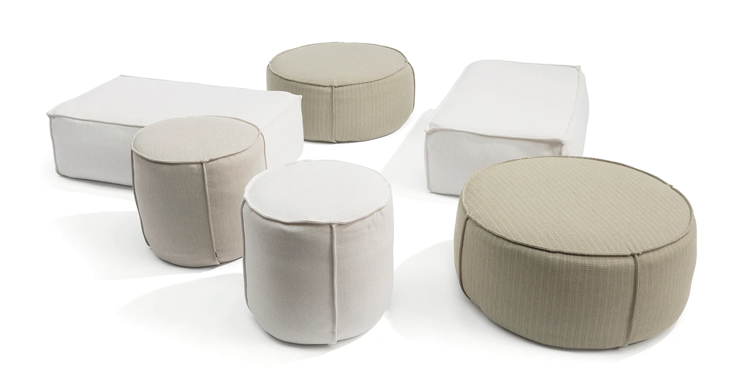 A Touch Pouff kerek formájával és puha töltetével a kerti kényelem megtestesítője. Az erős, vízáteresztő textilborítás időjárásálló, így kültéri használatra tökéletes választás. Sokoldalúságának köszönhetően extra ülőhelyként, lábtartóként vagy akár kis asztalként is használható. A kollekció többféle színben és anyagban elérhető, így könnyedén kombinálható más bútorokkal vagy különböző méretekben is variálható a játékos hatás érdekében.