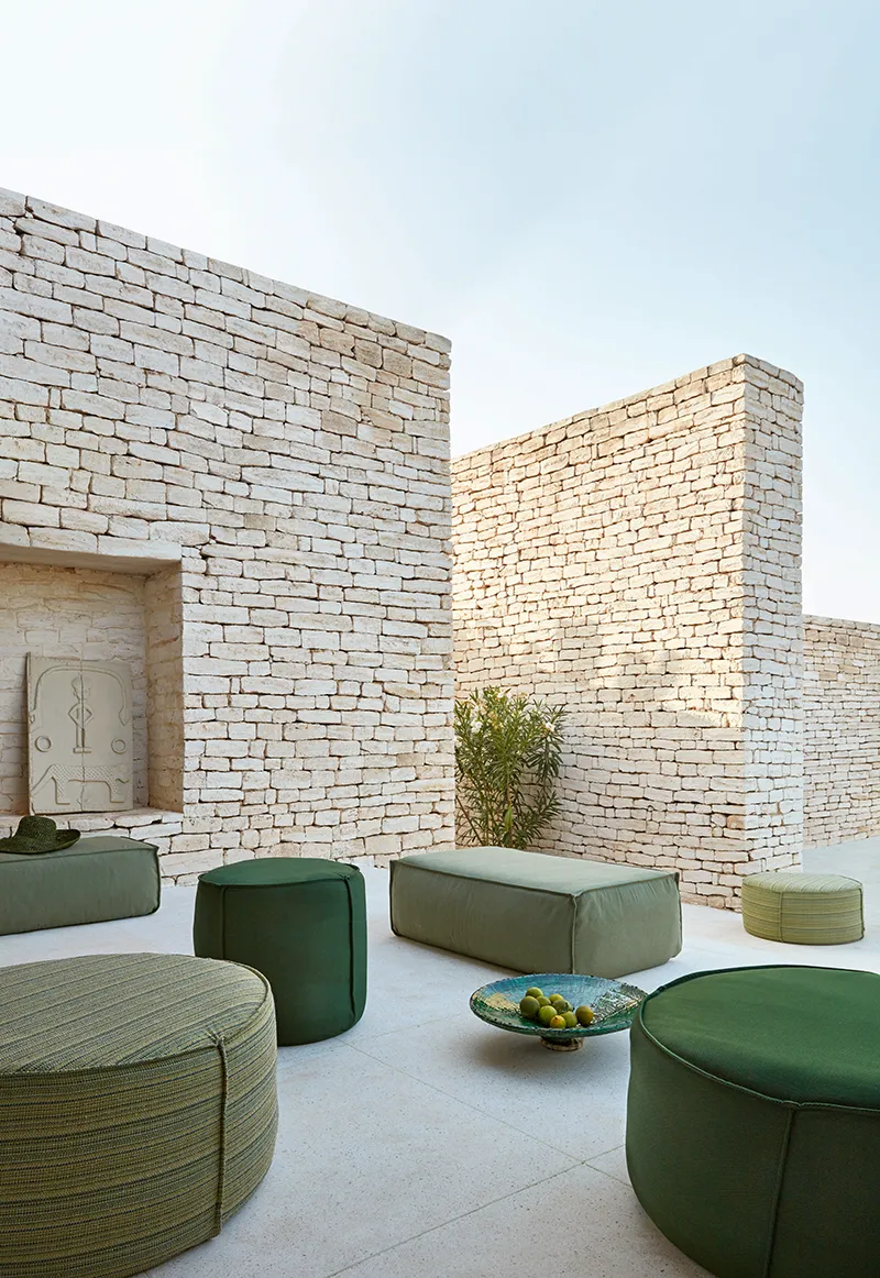 A Touch Pouff modern és sokoldalú kiegészítője lehet bármely kertnek vagy terasznak. Ez a kényelmes, nomád stílusú puff egyaránt használható ülőhelyként, lábtartóként, vagy akár kis asztalként. A Touch kollekció számos színben és anyagban elérhető, így könnyedén illeszthető bármilyen kültéri enteriőrhöz. Több méretben is kombinálható, vagy kisebb asztalokkal kiegészítve játékos és kreatív hatást érhet el.
