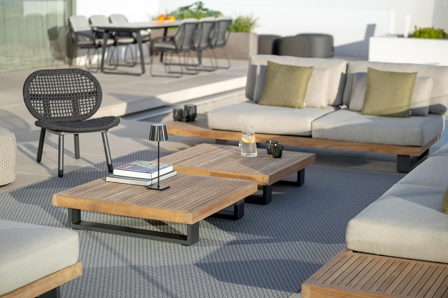 A trendi Truro kollekció igazi kedvenc bútordarabbá válhat a teraszunkon. Ez a lebegő hatást keltő kerti ülőgarnitúra harmonikusan illeszkedik a környezetbe, naturális megjelenése hívogat minket a természetbe, mi pedig engedhetünk a csábításnak és páratlan kényelmében megpihenhetünk egy fárasztó nap után. A gondosan válogatott A-osztályú teakfa és az alumínium váz kombinációja stílusos összhatást, a puha méretes párnák pedig pihentető kényelmet nyújtanak a kültéri élettérben.